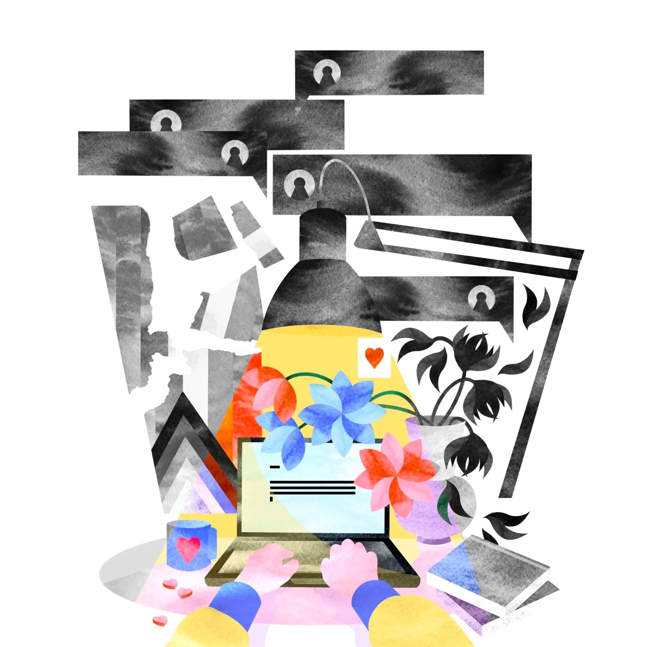 Redactionele illustraties vullen mijn portfoliobeeldmetaforen door een kleurrijke bril bij columns, artikelen en het nieuws